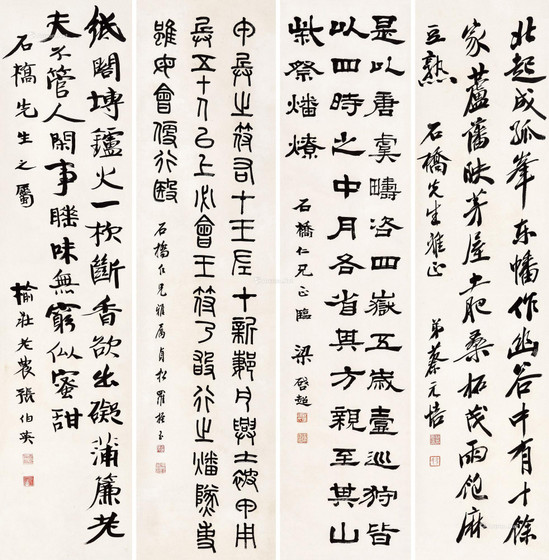 蔡元培 梁启超 罗振玉 张伯英 为石桥先生作书法四屏 立轴