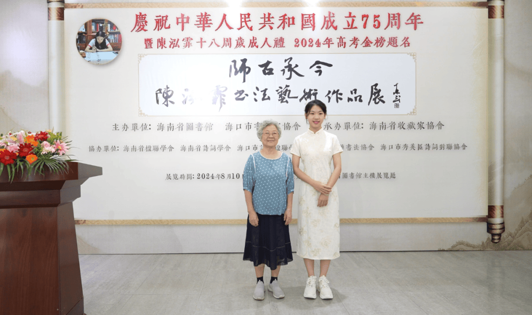 为庆祝中华人民共和国成立75周年暨陈泓霏十八周岁成人礼、2024年高考金榜题名,由海南省图书馆、海口市书法家协会联合主办的《师古承今——陈泓霏书法艺术作品展》,2024年8月10日至15日在海南省图书馆主楼展览厅盛大展出。