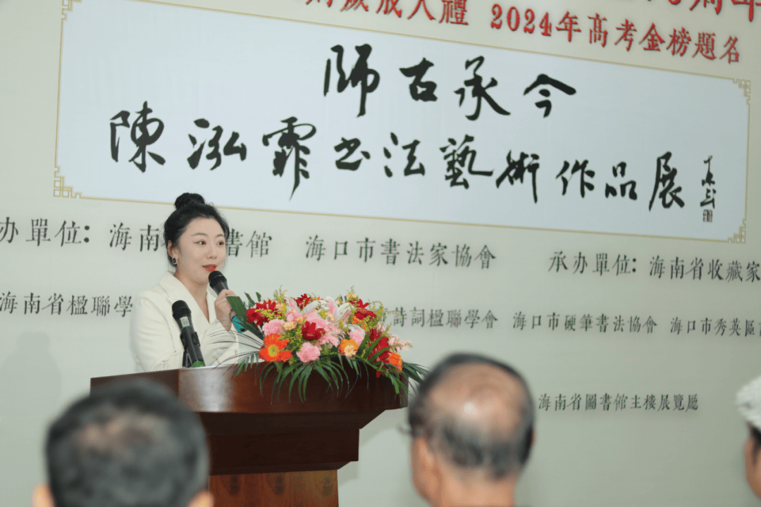 海南省人大常委会原副主任、海南省人民政府原副省长王琼瑛出席开幕式并宣布《师古承今——陈泓霏书法艺术作品展》开幕