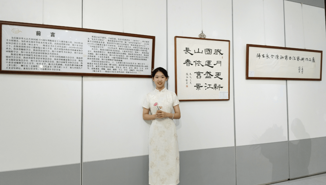 此次展出陈泓霏参加全国和省市大赛获奖作品、近期精心创作的毛笔和硬笔书法作品以及海南省领导、全国书法名家题词,共计50余幅。