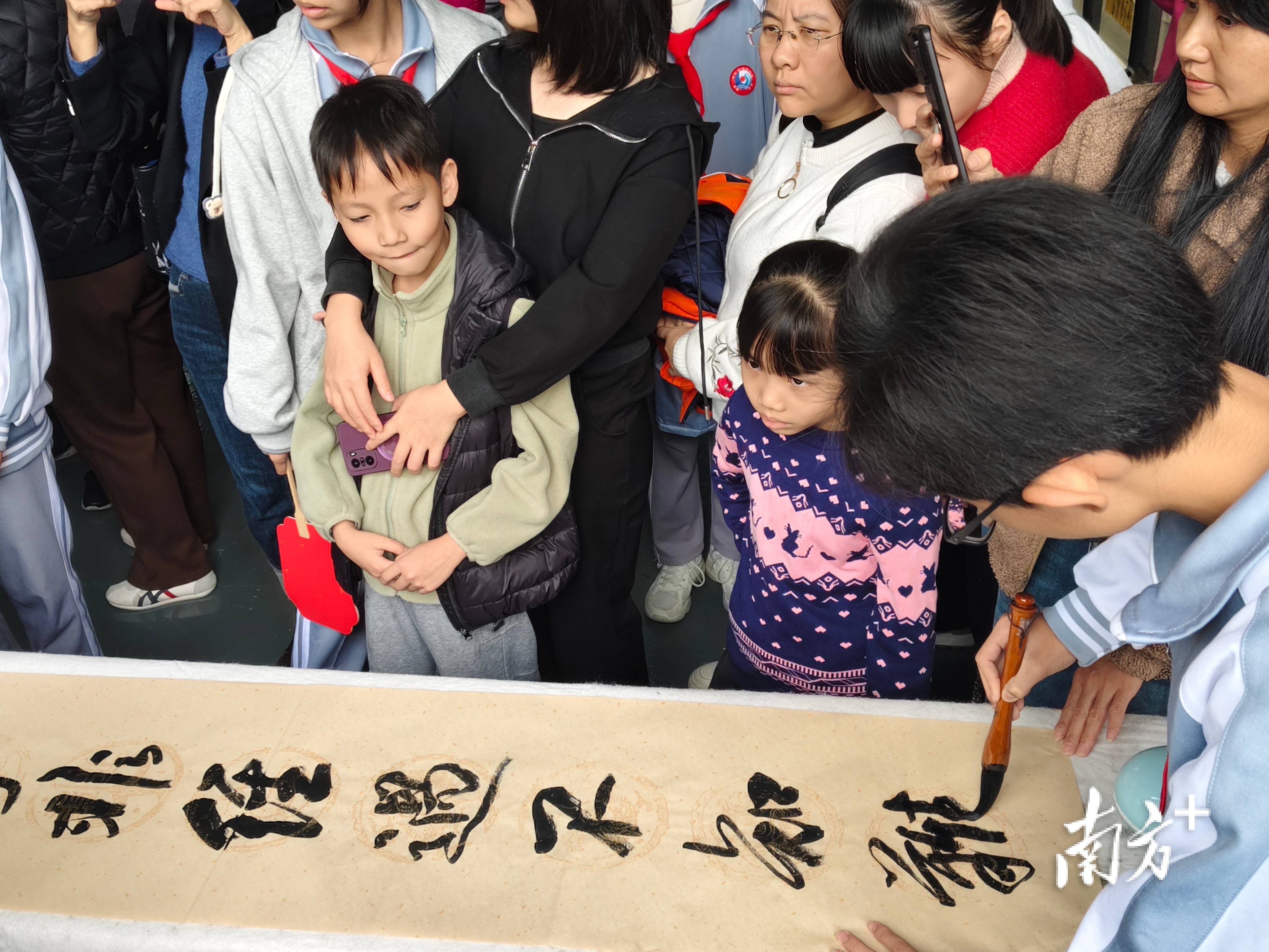 活动现场安排学生泼墨挥毫环节,孩子们以笔为媒、以墨抒情,现场展现书法创作风采,尽显对传统书画艺术的热爱。